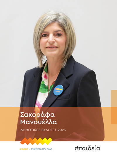 Αποτελώντας μέλος αυτού του κοινωνικού συνόλου και προσβλέποντας σε μία νέα δημοτική αρχή, μακριά από κομματικές γραμμές, που θα προάγει την ευημερία και τις κοινωνικές αλληλεπιδράσεις, συμβάλλοντας ταυτόχρονα στην ουσιαστική βελτίωση της ποιότητας ζωής όλων μας, δηλώνω τη συμμετοχή μου στο σπιράλ και συντάσσομαι ομόψυχα στο πλευρό του Πέτρου Ψωμά».