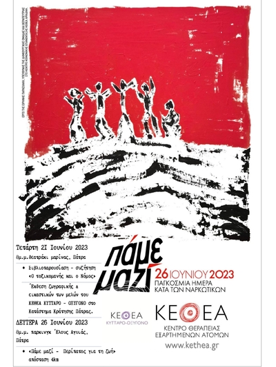 Εν όψει της Παγκόσμιας Ημέρας κατά των Ναρκωτικών 2023 (στις26 Ιουνίου), το ΚΕΘΕΑ πραγματοποιεί πανελλαδική καμπάνια με σύνθημα #Πάμε μαζί, για να υπογραμμίσει την αναγκαιότητα συλλογικής δράσης και πολιτικών συμπερίληψης για την αντιμετώπιση των εξαρτήσεων.