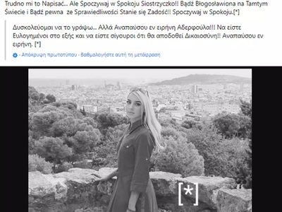 Την ίδια ώρα, και ο υπουργός Δικαιοσύνης της Πολωνίας ανέβασε στον προσωπικό του λογαριασμό στο twitter κείμενο για την 27χρονη Πολωνή, αναφέροντας ότι διετάχθη από τον ίδιο έρευνα για την εξιχνίαση της υπόθεσης της εγκληματικής ενέργειας -όπως όλα τα στοιχεία δείχνουν- ώστε να βρεθούν οι πραγματικοί ένοχοι.