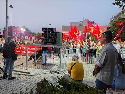 Κάλεσε σε «λαϊκό ξεσηκωμό ενάντια στην κλιμάκωση της επίθεσης στα δικαιώματα της νέας γενιάς, που παλεύει για μόρφωση με δικαιώματα και για εργασία με αξιοπρέπεια, για την αμέριστη στήριξη των καλλιτεχνών και το έργο τους γιατί ο πολιτισμός αποτελεί συστατικό στοιχείο της ανθρώπινης προσωπικότητας αλλά και της συλλογικής δράσης για να ανατρέψουμε τη σημερινή βαρβαρότητα, ενάντια στους εκατοντάδες χιλιάδες πλειστηριασμούς που ετοιμάζουν λαϊκών κατοικιών, ενάντια στην περαιτέρω εμπορευματοποίηση και υποβάθμιση της δημόσιας υγείας. Ένα λαϊκό ξεσηκωμό για την προστασία της ανθρώπινης ζωής, για μέτρα υγιεινής και ασφάλειας στους χώρους δουλειάς, για όλα αυτά τα απαραίτητα έργα υποδομής που προστατεύουν την ανθρώπινη ζωή από τις πλημμύρες, από τις φωτιές, από τους σεισμούς».