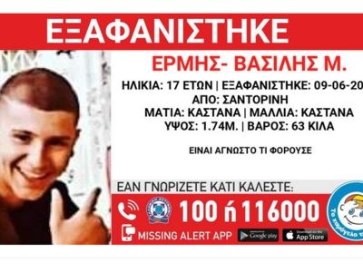 Τα ίχνη του 17χρονου εξαφανίστηκαν στις 09/06/2023 ενώ, σύμφωνα με το "Χαμόγελο του Παιδιού", είχε μεταβεί στη Σαντορίνη για να εργαστεί για τη θερινή περίοδο.