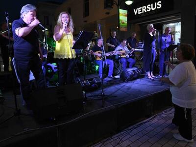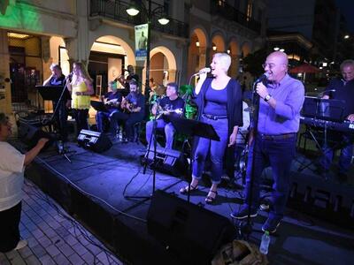 Ο πεζόδρομος της Αγίου Νικολάου στο ύψος της οδού Μαιζώνος ήταν το τρίτο σημείο αναφοράς των εκδηλώσεων, με την Ορχήστρα του Χορευτικού Τμήματος Πολιτιστικού Οργανισμού Δήμου Πατρέων να ερμηνεύει λαϊκά τραγούδια.