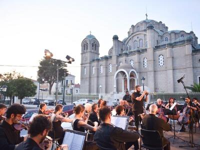 Η πλατεία του Παντοκράτορα στην άνω πόλη, την ίδια ώρα «πλημμύριζε» με έργα σημαντικών εκπροσώπων της κλασσικής μουσικής (Bach, Vivaldi, Albinoni, Holst, Piazzolla και Σκαλκώτα), που ερμήνευσε η Ορχήστρα Νυκτών Εγχόρδων του Δημοτικού Ωδείου.
