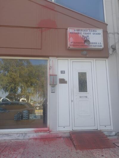 "Τα ξημερώματα της Παρασκευής 23 Ιούνη επιτεθήκαμε στα κεντρικά γραφεία της 5ης Περιφερειακής Διοίκησης του Λιμενικού Σώματος στην οδό Ακτή Δυμαίων στην Πάτρα. Ο πνιγμός εκατοντάδων μεταναστών και προσφύγων στα ανοιχτά της Πύλου ήταν ένα ακόμα στιγμιότυπο του καθημερινού πολέμου που διεξάγουν η Ευρώπη-φρούριο και το ελληνικό κράτος σε βάρος τους. Ένα ακόμα μαζικό κρατικό-καπιταλιστικό έγκλημα.