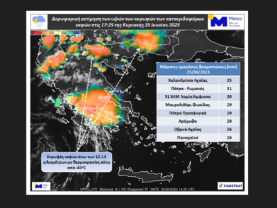 Όπως προκύπτει από αυτόν, το μεγαλύτερο ύψος βροχής καταγράφηκε στη Χαλανδρίτσα Αχαΐας και ήταν ίσο με 35 χιλιοστά.