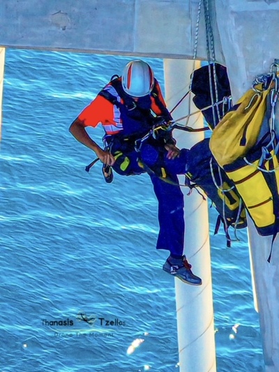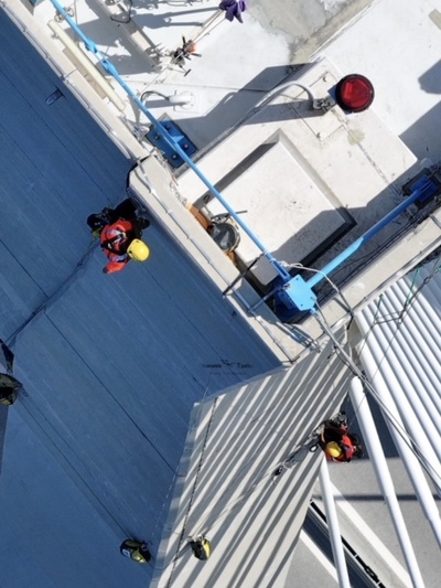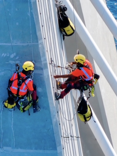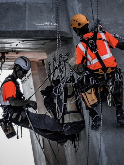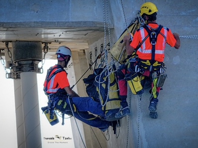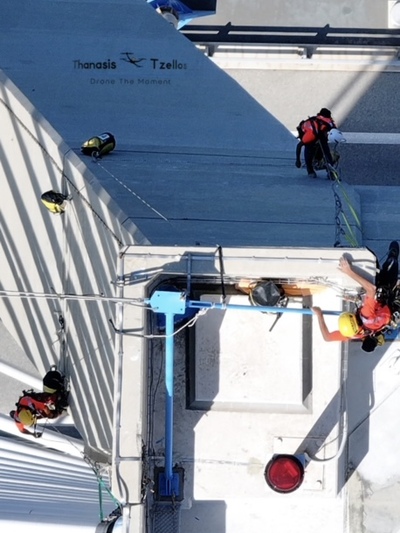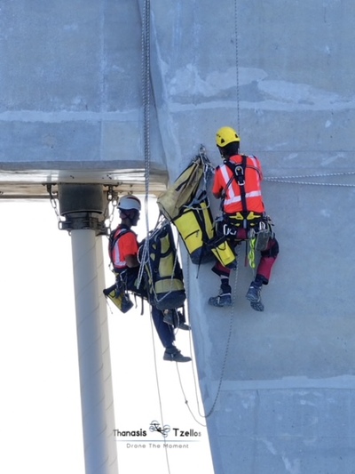 Ομάδα επτά αλπινιστών με υψηλή εξειδίκευση, ήρθε από τη Γαλλία αποκλειστικά για την επιθεώρηση και τις εργασίες συντήρησης καλωδίων και πυλώνων.
