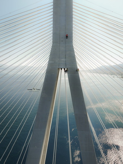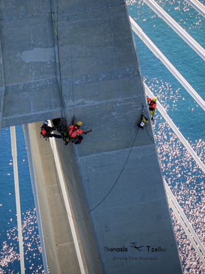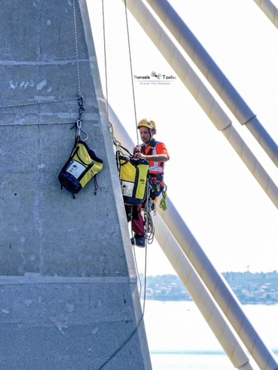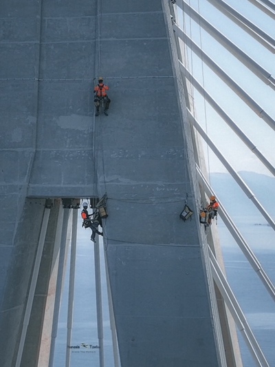 Συνεχίζονται οι εργασίες επιθεώρησης και συντήρησης στα καλώδια και τις εξωτερικές επιφάνειες των πυλώνων στη γέφυρα Ρίου - Αντιρρίου.