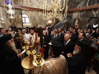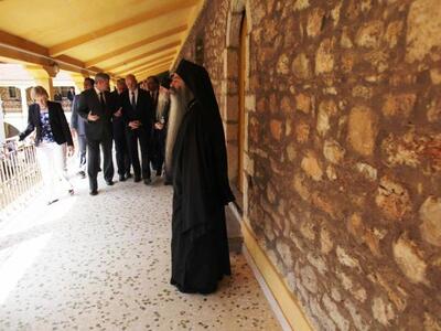 Στη συνέχεια ανέβηκαν στο λόφο του Καπή και κατέθεσαν στεφάνι στο μνημείο του Καλαβρυτινού ολοκαυτώματος και άναψαν κεριά στην κατακόμβη των ηρώων.