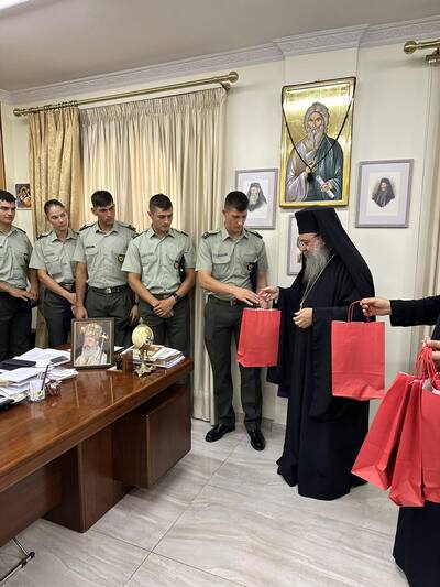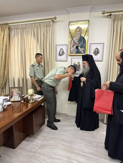 Τον σεβασμιότατο Μητροπολίτη Πατρών κ.κ. Χρυσόστομο, επισκέφθηκαν οι εκπαιδευόμενοι, στο ΚΕΤΧ Πατρῶν, Ανθυπολοχαγοί τῆς Τάξεως ΣΣΕ 23, συνοδευόμενοι από τόν Διοικητή τοῦ ΚΕΤΧ κ. Εὐάγγελον Τούντα.