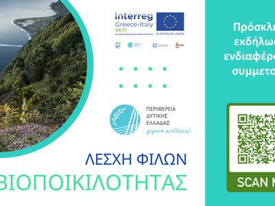 Η Περιφέρεια Δυτικής Ελλάδας συμμετέχει ως εταίρος στο έργο BEST «Addressing joint Agro - and Aqua – Biodiversity pressures Enhancing Sustainable Rural Development» («Αντιμετώπιση των κοινών πιέσεων στην Αγρο – και Υδρο – Βιοποικιλότητα, Ενίσχυση της Αειφόρου Αγροτικής Ανάπτυξης») στο πλαίσιο του προγράμματος συνεργασίας Interreg V/Α Ελλάδα Ιταλία (GR-IT) 2014-2020.