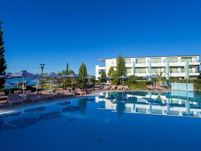 Ανάμεσα στα δέντρα, ξεπροβάλλει η εντυπωσιακή πισίνα του ξενοδοχείου που σε κάνει να ξεχνάς όλα όσα σε αγχώνουν. Λίγα χιλιόμετρα έξω από το κέντρο της Πάτρας, στο Ψαθόπυργο, μπορείς να βρεις αυτό που αναζητάς.