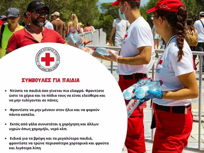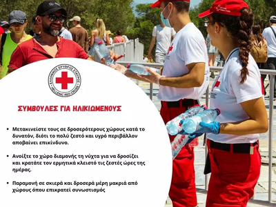 Οδηγίες για προστασία από τον καύσωνα και τις υψηλές θερμοκρασίες εξέδωσε και ο Ελληνικός Ερυθρός Σταυρός, με έμφαση μάλιστα στα άτομα υψηλού κινδύνου, όπως είναι οι ηλικιωμένοι και τα παιδιά.