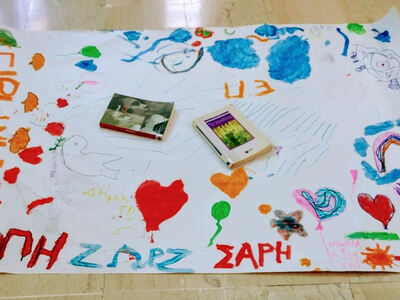 Τα παιδιά περιηγήθηκαν στις ιστορίες, σκέφτηκαν, κατέγραψαν τις ιδέες τους, συνεργάστηκαν και δημιούργησαν δύο ...χάρτινους τοίχους με συνθήματα και γκράφιτι αισιοδοξίας, ειρήνης και αγάπης !!