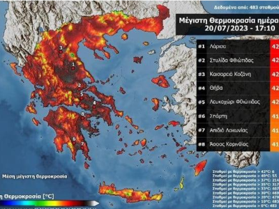 Ξεκίνησε η δεύτερη φάση του καύσωνα και σύμφωνα με δίκτυο αυτόματων μετεωρολογικών σταθμών του Εθνικού Αστεροσκοπείου Αθηνών / Meteo.gr οι μέγιστες θερμοκρασίεςκυμάνθηκαν σε πολύ υψηλά επίπεδα, ξεπερνώντας σε πολλές περιοχές τους 40 βαθμούς.