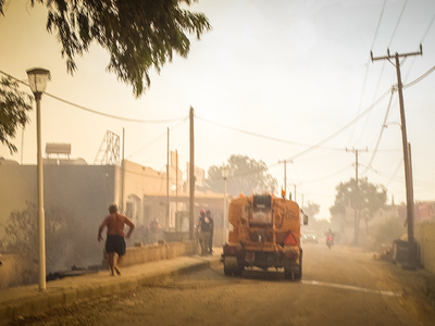 Νωρίτερα, είχε ζητηθεί η εσπευσμένη απομάκρυνση όσων βρίσκονταν στα χωριά της Λίνδου και της Καλάθου καθώς και στον οικισμό των Πεύκων, σύμφωνα με επείγουσα ειδοποίηση του υπουργείου Κλιματικής Αλλαγής.