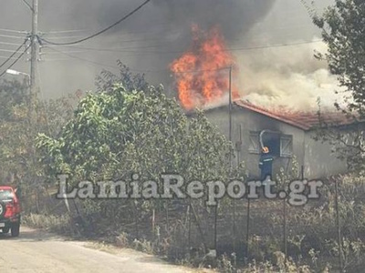 Εξαπλώνεται η φωτιά στη Λαμία, με τις φλόγες να έχουν ήδη κάψει μία αποθήκη στην περιοχή του Αφανού και δύο σπίτια.