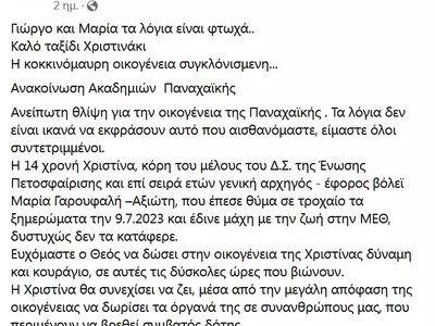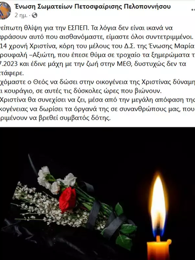 Η 14χρονη Χριστίνα από την Πάτρα που άφησε την τελευταία πνοή της μετά από το τροχαίο δυστύχημα και χάρισε ζωή μετά θάνατον σε συνανθρώπους της με προβλήματα υγείας, αποτελεί θέμα συζήτησης και στο διαδίκτυο.
