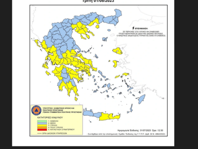 Υψηλός κίνδυνος πυρκαγιάς προβλέπεται την Τρίτη 1η Αυγούστου σε τρεις περιφέρειες, σύμφωνα με τον Χάρτη Πρόβλεψης Κινδύνου Πυρκαγιάς που εκδίδει η Γενική Γραμματεία Πολιτικής Προστασίας του Υπουργείου Κλιματικής Κρίσης & Πολιτικής Προστασίας.