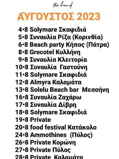 Εκτός από το live στην Κλειτορία, όπως είδαμε στη σελίδα τους στο facebook, οι Passepartout θα πραγματοποιήσουν πολλές ακόμη μουσικές εμφανίσεις μέσα στον Αύγουστο όπως στη Γαστούνη στις 10/8.
