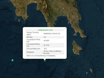 Σύμφωνα με το Γεωδυναμικό Ινστιτούτο, ο σεισμός ήταν μεγέθους 3,8 Ρίχτερ και σημειώθηκε 48 χιλιόμετρα νοτιοδυτικά της Βάθειας στη Λακωνία.