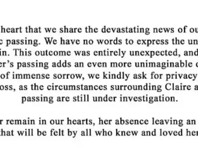 Την Τετάρτη, η «οικογένεια» του κοριτσιού εξέδωσε ανακοίνωση στα social media: «Με βαριά καρδιά μοιραζόμαστε την οδυνηρή είδηση του ξαφνικού και τραγικού θανάτου της αγαπημένης μας Claire. Δεν έχουμε λόγια να εκφράσουμε την αβάσταχτη απώλεια και τον απερίγραπτο πόνο. Το αποτέλεσμα ήταν εντελώς απροσδόκητο και μας έχει αφήσει όλους σε κατάσταση σοκ. Ο θάνατος του αδελφού της κάνει ακόμα μεγαλύτερη τη θλίψη μας. Κατά τη διάρκεια αυτής της περιόδου, παρακαλούμε για την προστασία της ιδιωτικής μας ζωής καθώς θρηνούμε αυτή τη συντριπτική απώλεια, καθώς οι συνθήκες γύρω από τον θάνατο της Claire και του αδελφού της βρίσκονται ακόμη υπό διερεύνηση. Η Claire θα παραμείνει για πάντα στις καρδιές μας, η απουσία της αφήνει ένα αναντικατάστατο κενό που θα νιώσουν όλοι όσοι τη γνώριζαν και την αγαπούσαν».