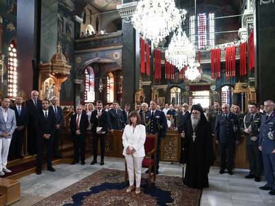 «Ο λαός μας πάντοτε αντλούσε παρηγοριά και δύναμη από την προστατευτική παρουσία της Παναγίας», επισήμανε η πρόεδρος της Δημοκρατίας, Κατερίνα Σακελλαροπούλου, η οποία ευχήθηκε “Χρόνια Πολλά” από τον ακριτικό Έβρο, καθώς παρέστη στην Αρχιερατική Θεία Λειτουργία, για την Κοίμηση της Θεοτόκου, που έγινε στο Μητροπολιτικό Ναό Αλεξανδρούπολης, στην οποία χοροστάτησε ο μητροπολίτης Ανθιμος.