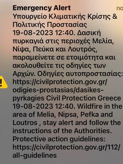 Λίγο μετά τις 3, εστάλη νέο μήνυμα 112 στυος κατοικους των οικισμών Νίψα, Αετοχώρι και Πεύκα για γην εκκένωσή τους.