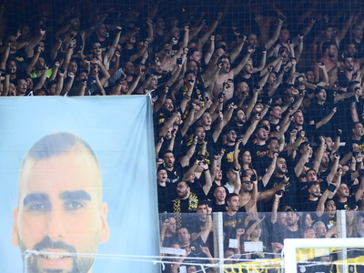 Λίγο μετά, οι φίλοι της ΑΕΚ ύψωσαν τις γροθιές τους, στη μνήμη του Μιχάλη.
