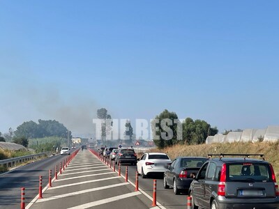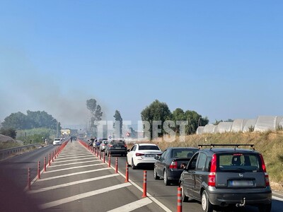Φωτιά παραπλεύρως της Νέας Εθνικής Οδού Πατρών- Πύργου, σε καλάμια ξέσπασε νωρίτερα, στο ύψος της Νέας Μανωλάδας.