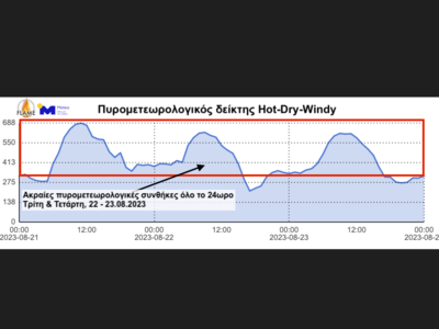 Ακραίες πυρομετεωρολογικές συνθήκες αναμένονται σε μεγάλα τμήματα της χώρας μας σήμερα (22/8) και αύριο (23/8), όπως προκύπτει από την ανάλυση των πιο πρόσφατα διαθέσιμων προγνωστικών στοιχείων της Πυρομετεωρολογικής Ομάδας FLAME της μονάδας ΜΕΤΕΟ του Εθνικού Αστεροσκοπείου Αθηνών (ΕΑΑ).