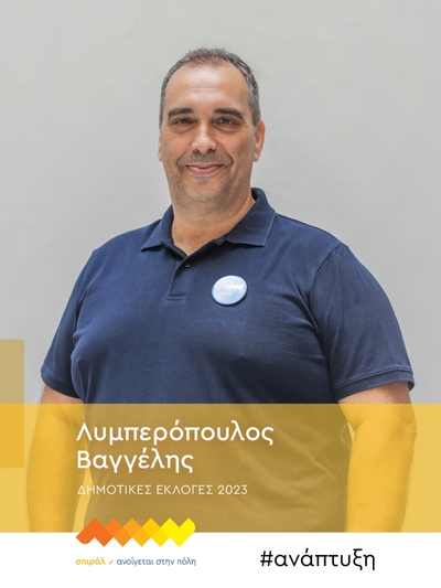Ο Βαγγέλης Λυμπερόπουλος γεννήθηκε στην Αυστραλία από πατρινούς γονείς, πριν από 55 χρόνια αλλά μεγάλωσε στην Πάτρα. Έχει σπουδές στα Οικονομικά και τη Διοίκηση Επιχειρήσεων. Έχει εργαστεί ως στέλεχος Εμπορικών Διευθύνσεων σε ελληνικές και πολυεθνικές εταιρείες με συνολική πορεία περίπου 30 χρόνων. Τώρα εργάζεται σε διοικητική θέση σε τοπική εμπορική και παραγωγική επιχείρηση με πανελλαδική εμβέλεια που τολμά και στρέφει το βλέμμα της προς την Ευρώπη. Λόγω της δουλειάς του, ταξιδεύει πολύ, εντόςκαι εκτός Ελλάδας. Η νοσταλγία που νοιώθει κάθε φορά που αφήνει την Πάτρα, πάντα μετατρέπεται σε απογοήτευση όταν επιστρέφει, καθώς η απόσταση της πόλης μας από άλλες ευρωπαϊκές αλλά, κυρίως, και από άλλες ελληνικές μεγαλώνει διαρκώς, με την Πάτρα να είναι αυτή που μένει πίσω. Γι’ αυτό και το 2019 αποφάσισε να ενώσει τη διάθεσή του για αντιστροφή αυτής της πορείας, με τα υπόλοιπα ιδρυτικά μέλη του σπιράλ και τον Πέτρο Ψωμά και συμμετείχε ως υποψήφιος στο ψηφοδέλτιο της νεοφώτιστης δημοτικής παράταξης. Είναι παντρεμένος με τη Νηπιαγωγό, Μαρία Σουλβατζή και έχει 2 κόρες, την Έλλη και τη Μυρτώ, που είναι και οι δύο φοιτήτριες σε Πανεπιστημιακές Σχολές.