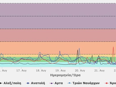Με τις μεγάλες πυρκαγιές σε Έβρο, Βοιωτία, Εύβοια και Αττική να είναι σε εξέλιξη μεταξύ άλλων, σταθμοί της ΠΑΝΑΚΕΙΑ κατέγραψαν την Τρίτη υψηλές συγκεντρώσεις μικροσωματιδίων ακόμα και εκατοντάδες χιλιόμετρα μακριά από τα πύρινα μέτωπα.