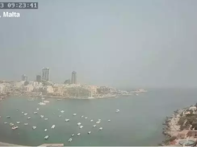 Ειδικά στην περιοχή της Σικελίας και της Μάλτας, η ποιότητα του αέρα είναι εξαιρετικά χαμηλή λόγω της υψηλής συγκέντρωσης μικροσωματιδίων PM10 και PM2.5. Η εικόνα από την Μάλτα είναι χαρακτηριστική….