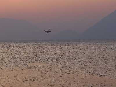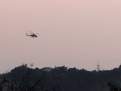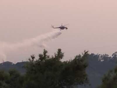 Εδώ και λίγη ώρα έχουν σταματήσει οι ριψείς νερού από το ελικόπτερο που επιχειρούσε στην κατάσβεση.
