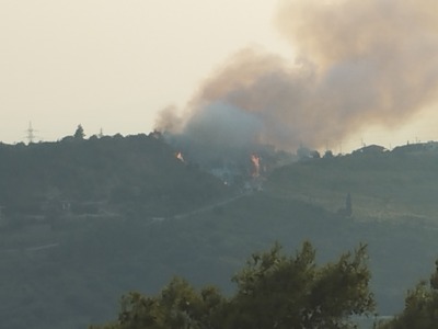 Σύμφωνα με τις πρώτες πληροφορίες λόγω των ανέμων η φωτιά κρίνεται επικίνδυνη.