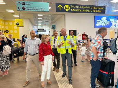 Στα αεροδρόμια της Κέρκυρας και του Ακτίου οι κ.κ. Αλεξοπούλου και Ξιφαράς είχαν αναλυτική ενημέρωση από την υπηρεσιακή ιεραρχία για τη λειτουργία τους, την επιβατική κίνηση, την παροχή υπηρεσιών επίγειας εξυπηρέτησης, για ζητήματα προσβασιμότητας ατόμων με αναπηρία, καθώς και για ζητήματα ασφάλειας. Επίσης, περιηγήθηκαν στις εγκαταστάσεις των αεροδρομίων, όπου συνομίλησαν με εργαζόμενους και επιβάτες.