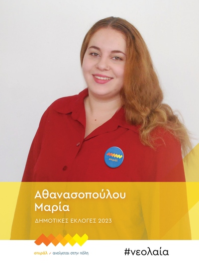 Η Μαρία Αθανασοπούλου, είναι 21 ετών, γεννήθηκε και ζει στα Μποζαΐτικα Πατρών και είναι φοιτήτρια του τμήματος Επιστημών μας Εκπαίδευσης και μας Αγωγής στην Προσχολική Ηλικία του Πανεπιστημίου Πατρών. Είναι το πρώτο παιδί πενταμελούς οικογένειας εκπαιδευτικών. Με οδηγό την αγάπη μας για τα παιδιά και την εκπαίδευση, επιδιώκει να συμβάλει στη δημιουργία συνθηκών εμπιστοσύνης και χαράς των μικρών μαθητών μας το σχολείο. Ως εθελόντρια του Ελληνικού Ερυθρού Σταυρού, εκφράζει την ανθρωπιστική μας φιλοσοφία. Ταυτόχρονα, μέσα από την αρθρογραφία μας σε ηλεκτρονική εφημερίδα (Φοιτητικός Κόσμος), αναδεικνύει κοινωνικά θέματα με λογοτεχνικό τρόπο. Με ευαισθησία μας την κοινωνία, την εκπαίδευση και το περιβάλλον, η συμμετοχή μας στα κοινά μας πόλης μας και μας αυτοδιοίκησης μας συνιστά ένα θετικό βήμα μας την ενίσχυση μας κοινότητάς μας.