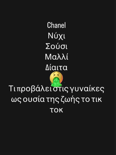 Η παρουσιάστρια τα «έβαλε» με την πλατφόρμα και το πώς προβάλλεται η γυναικεία εικόνα μέσα από αυτή. Με μια ανάρτησή της, η Ελεονώρα Μελέτη έγραψε: «Chanel, νύχι, σούσι, μαλλί, δίαιτα. Τι προβάλλει στις γυναίκες ως ουσία ζωής το TikTok».