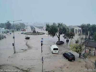 Η νεροποντή έχει προκαλέσει μία πρωτοφανή κατάσταση στην πρωτεύουσα της Μαγνησίας, την ώρα που η κακοκαιρία Daniel σαρώνει τη χώρα.