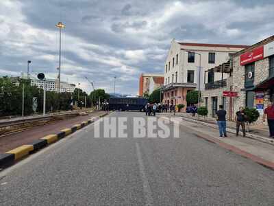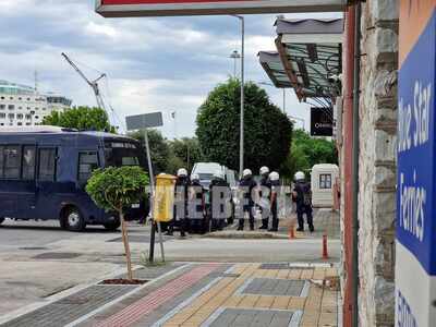 Ισχυρές δυνάμεις της τοπικής Ελληνικής Αστυνομίας στο σημείο έχουν μπλοκάρει την πρόσβαση κοντά στα γραφεία.