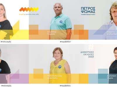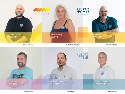 Λίγες ώρες πριν την επίσημη ανακήρυξη των συνδυασμών, που θα λάβουν μέρος στις δημοτικές εκλογές του Οκτωβρίου, ο υποψήφιος Δήμαρχος Πέτρος Ψωμάς παρουσιάζει 12 ακόμα πρόσωπα που συμμετέχουν στο ψηφοδέλτιο της δημοτικής παράταξης σπιράλ.