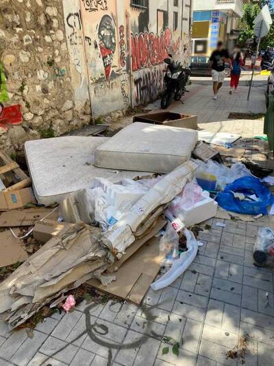 Στρώματα, σακκούλες και άλλα απορρίμματα βρίσκονται συγκεντρωμένα σε πεζοδρόμιο στην οδό Φαβιέρου στην Πάτρα. Το σκηνικό δεν είναι διόλου κολακευτικό και έχει προκαλέσει διαμαρτυρίες.