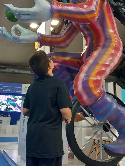 Τα παιδιά και οι έφηβοι αποδεικνύουν έμπρακτα ότι έχουν αγκαλιάσει το Πατρινό Καρναβάλι, την αγαπημένη γιορτή, περιηγούνται στα εκθέματα και φωτογραφίζονται με τον μπάστακα-ποδηλάτη, τις στολές των τελάληδων, τα τρισδιάστατα γλυπτά-φιγούρες του Δημήτρη Βάρδα που αντιπροσωπεύουν το θέατρο σκιών στο Πατρινό Καρναβάλι, βλέπουν οπτικοακουστικό υλικό από τις παρελάσεις του Καρναβαλιού των Μικρών και του Πατρινού Καρναβαλιού και παίρνουν αναμνηστικά και σοκολάτες.