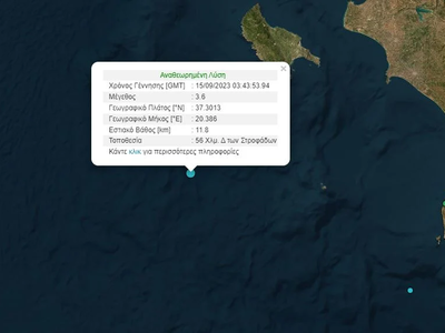 Σεισμός μεγέθους 3,6 βαθμών της κλίμακας Ρίχτερ καταγράφηκε τα ξημερώματα της Παρασκευής 15/09/2023, στη θαλάσσια περιοχή ανοικτά της Ζακύνθου.