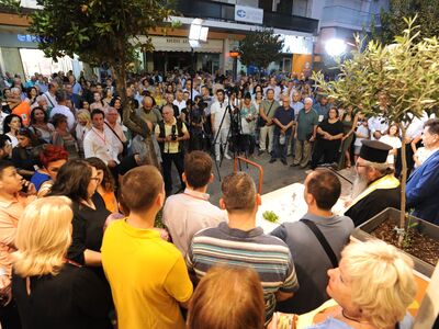 Πριν την ομιλία του υποψηφίου Δημάρχου πραγματοποιήθηκε ο καθιερωμένος αγιασμός και αμέσως μετά, πλήθος κόσμου είχε την ευκαιρία να συνομιλήσει με τους υποψηφίους του σπιράλ και τον ίδιο τον Πέτρο Ψωμά και να γνωρίσει τις πρωτοποριακές υπηρεσίες που προσφέρει το εκλογικό κέντρο".