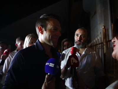Ο Στέφανος Κασσελάκης έφτασε στα γραφεία συνοδευόμενος από τον σύντροφό του Τάιλερ και απέφυγε ευγενικά να κάνει κάποια δήλωση παρά τις επίμονες ερωτήσεις των δημοσιογράφων.
