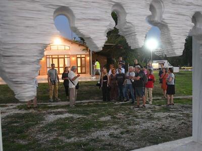 Οι ζωγράφοι ξεναγήθηκαν στην υπαίθρια έκθεση που έχει αναπτυχθεί εκεί με αφορμή την πραγματοποίηση του συμποσίου, καθώς και στην υπαίθρια γλυπτοθήκη η οποία λειτουργεί στο χώρο και απαρτίζεται από τα έργα των εικαστικών που συμμετείχαν στο συμπόσιο γλυπτικής του 2022.. Παρόντες ήταν και οι γλύπτες Χρήστος και Φίλιππος Βαλεράς έργα των οποίων υπάρχουν στο χώρο.