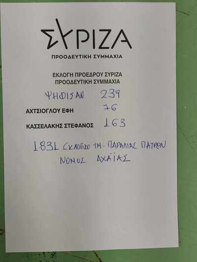 Από το εκλογικό τμήμα Παραλίας έρχεται το πρώτο αποτέλεσμα των εκλογών του ΣΥΡΙΖΑ σε ό,τι αφορά την Πάτρα.