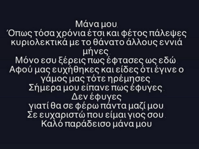 «Είδες ότι έγινε ο γάμος μας, τότε ηρέμησες», έγραψε στο αποχαιρετιστήριο μήνυμά του