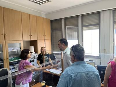 Ακολούθησε επίσκεψη του κ. Σκιαδαρέση στο Διοικητήριο της Περιφέρειας στον Πύργο, όπου είχε την ευκαιρία να συνομιλήσει μ’ έναν προς έναν με τους εργαζόμενους σε όλα τα τμήματα και υπηρεσίες, στα γραφεία της Β’ Βάθμιας Εκπαίδευσης Ηλείας, όπου συναντήθηκε με τον Διευθυντή, Ανδρέα Ζέρβα, με τον οποίο είχαν συνεργαστεί στο παρελθόν, από τη θητεία του δεύτερου, στην αντίστοιχη Διεύθυνση Αχαΐας και στο Δικαστικό Μέγαρο.